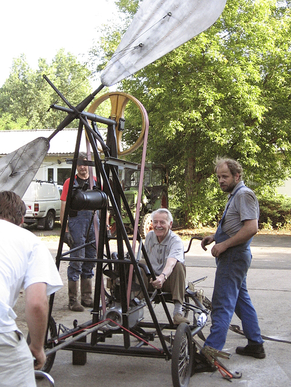 Thomas Kunath, Konstrukteur des Originalnachbaus des Buchet Motors und Harald Lohmann beim TestenThomas Kunath, constructor of the exact replica of the Buchet-engine, and Harald Lohmann during testsDownload: JPG (972 KB)