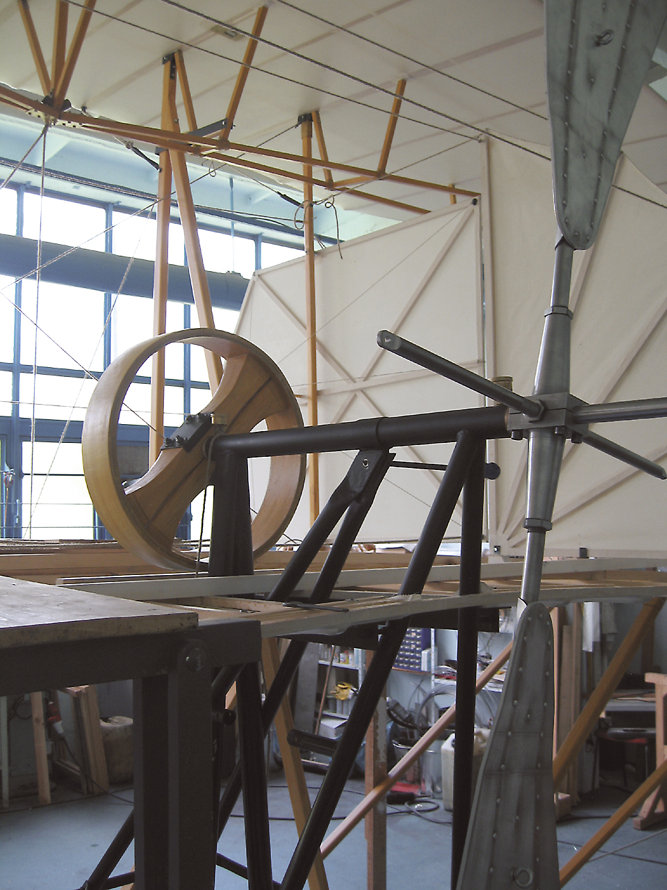 Die Transmissionsrolle und der Propeller des Jatho Motorfliegers.Transmission shaft and propeller of Jatho’s flying machineDownload: JPG (990 KB)